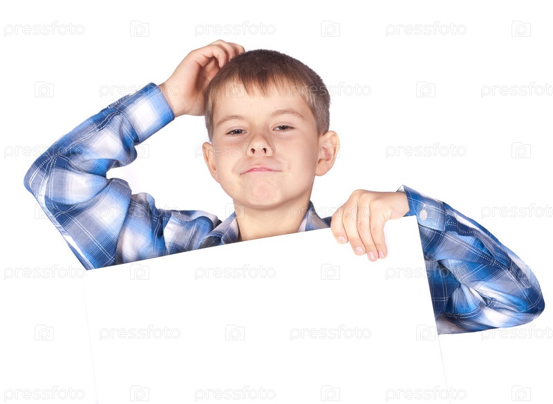 Мальчик с пустым плакатом в руках