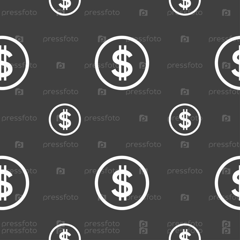 Значок знак доллара. Бесшовный узор на сером фоне. Вектор