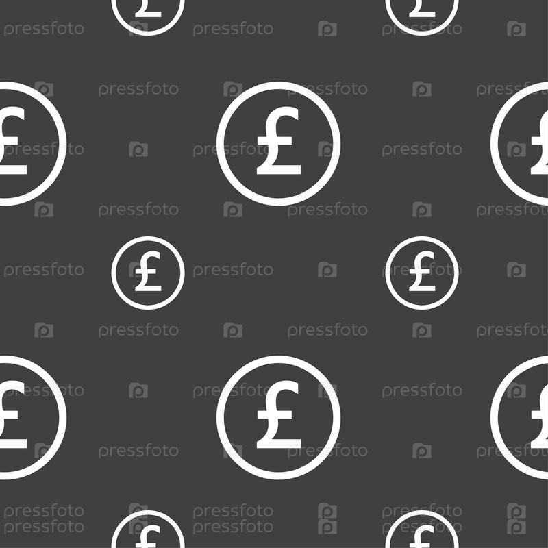 Знак фунта стерлингов значок. Бесшовный узор на сером фоне. Вектор