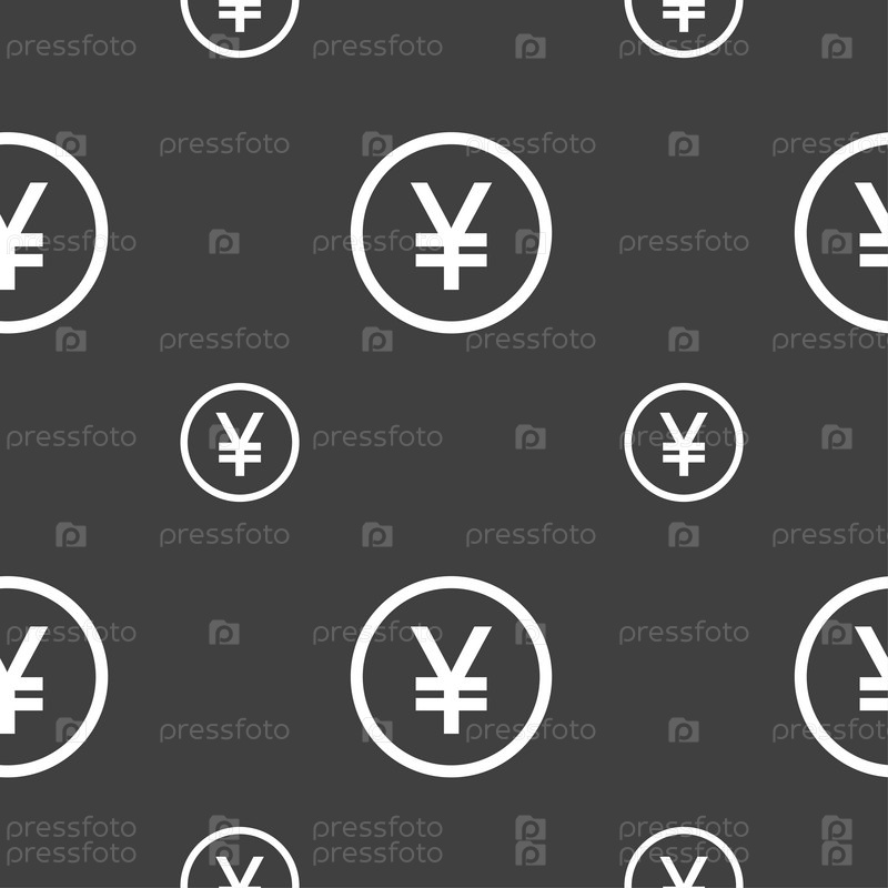 Японские Юань значок. Бесшовный узор на сером фоне. Вектор