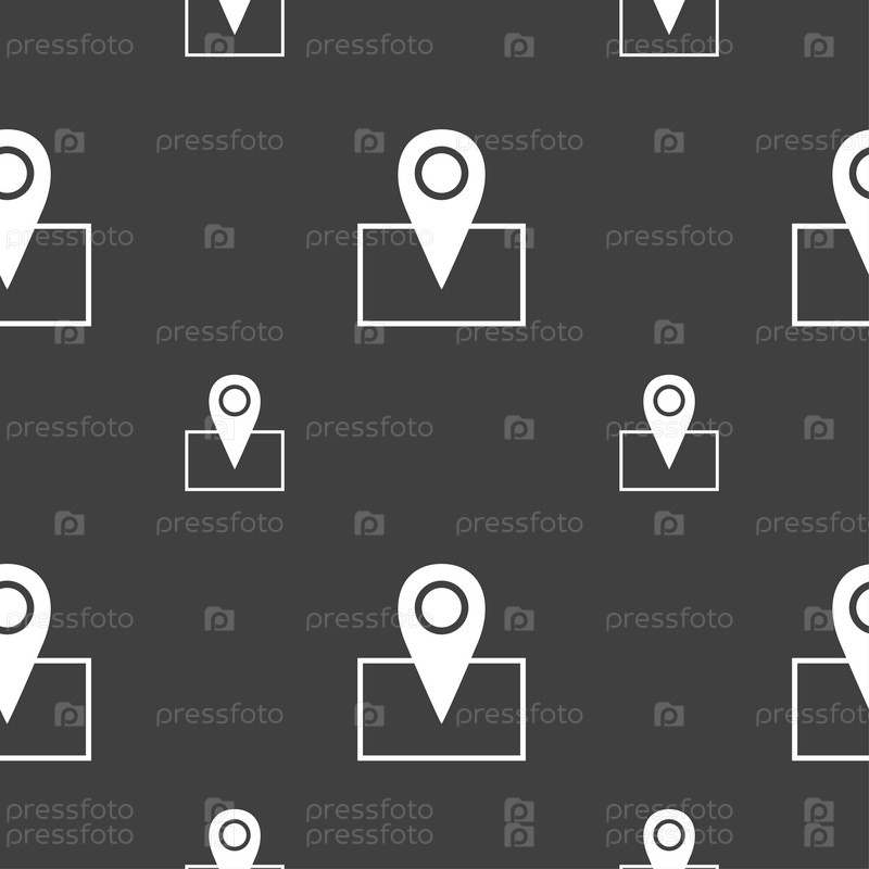 Значок указателя карты. Бесшовный узор на сером фоне. Вектор