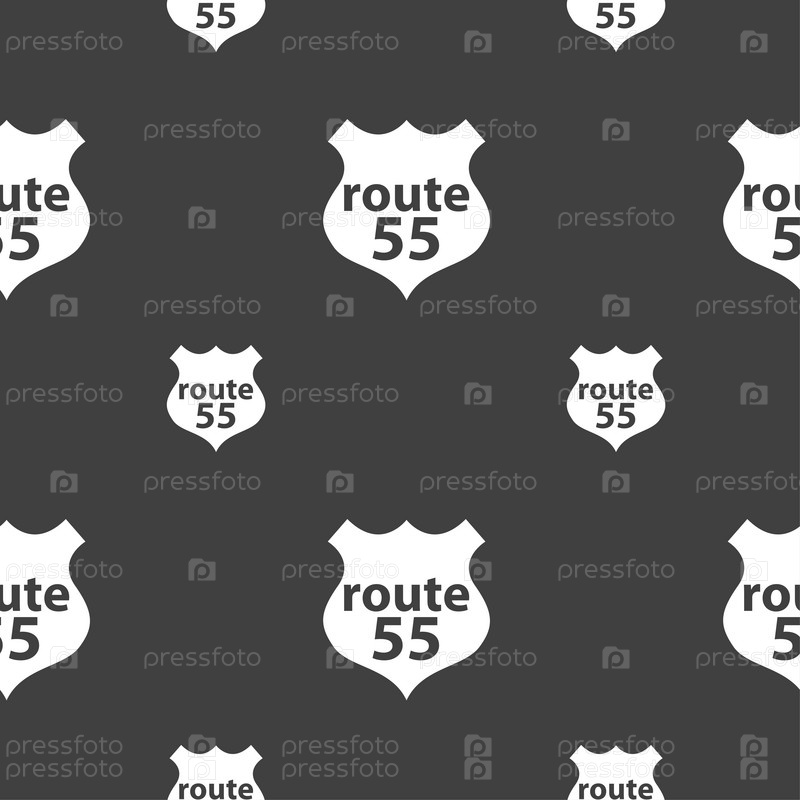 Маршрут 55 шоссе. Бесшовный узор на сером фоне. Вектор