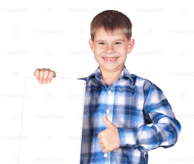 Мальчик с пустым листом бумаги в руках