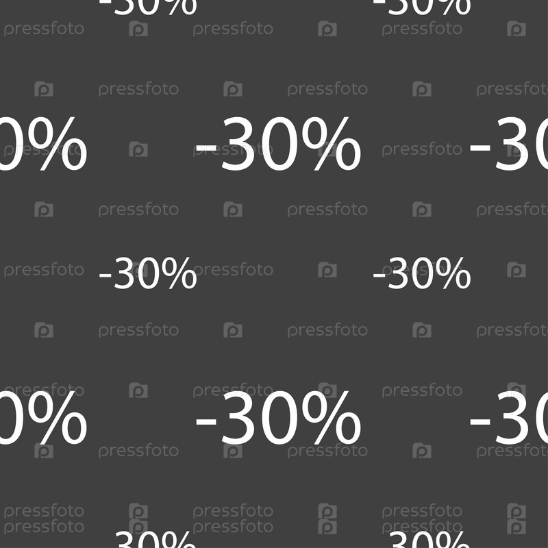 30% скидка. Бесшовный узор на сером фоне. Вектор