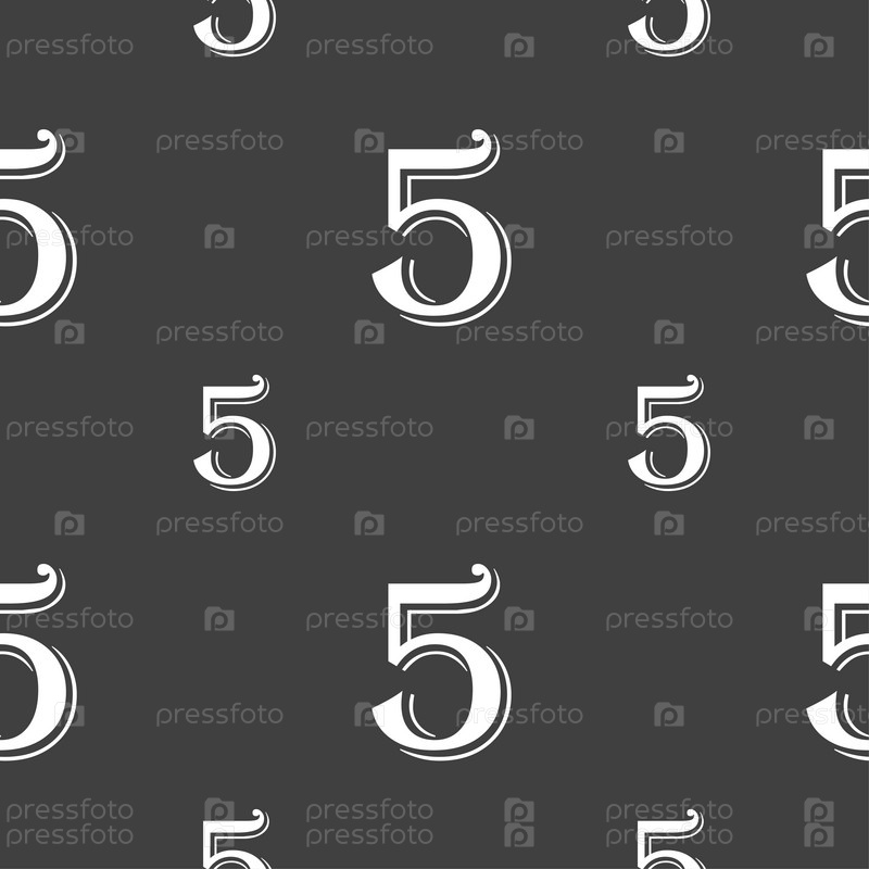Номер пять. Бесшовный узор на сером фоне. Вектор