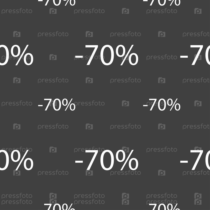 70% скидка. Бесшовный узор на сером фоне. Вектор