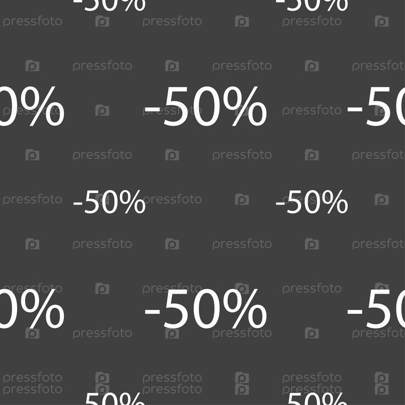 50% скидка. Бесшовный узор на сером фоне. Вектор