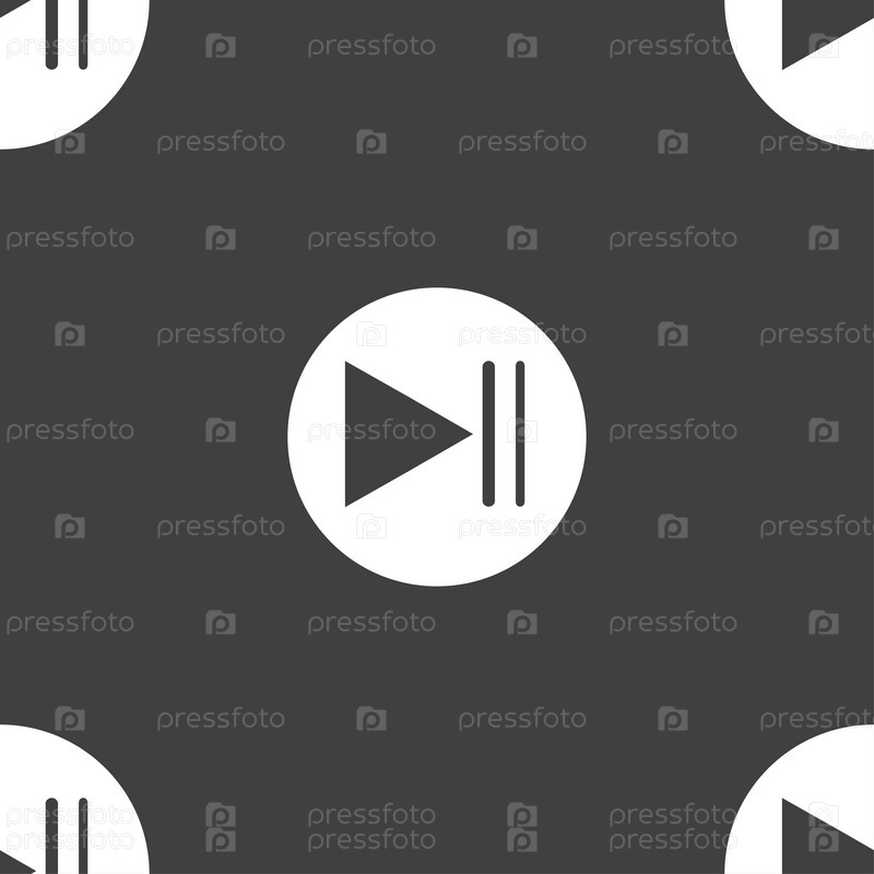 Играть значок кнопки. Бесшовный узор на сером фоне. Вектор