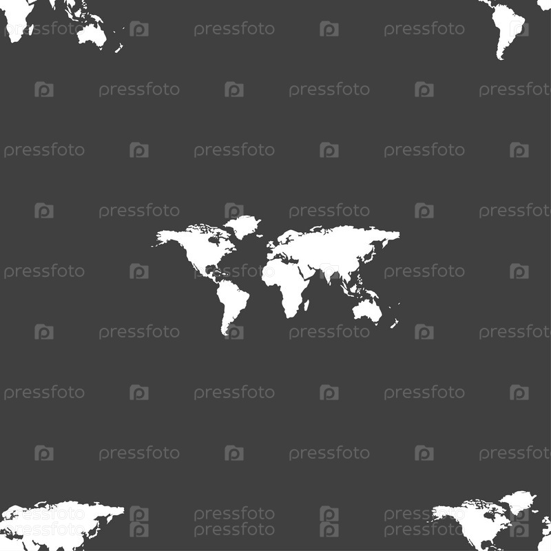 Карта мира. Бесшовный узор на сером фоне. Вектор