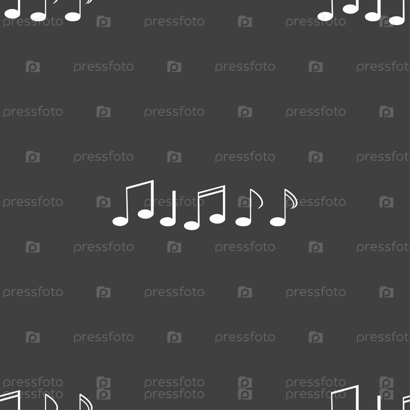 Музыка. Бесшовный узор на сером фоне. Вектор
