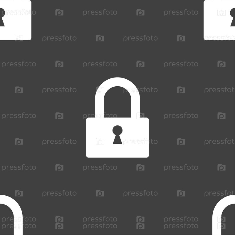 Значок замка. Бесшовный узор на сером фоне. Вектор
