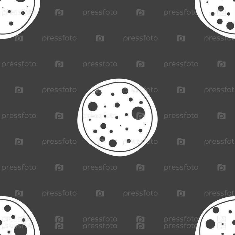 Пицца значок. Бесшовный узор на сером фоне. Вектор