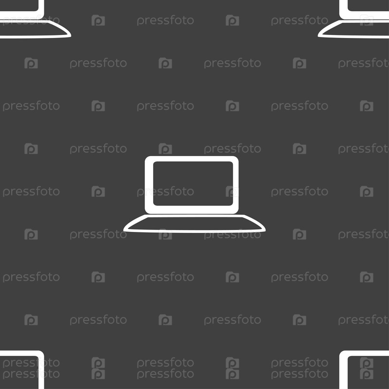 Иконка ноутбук. Бесшовный узор на сером фоне. Вектор
