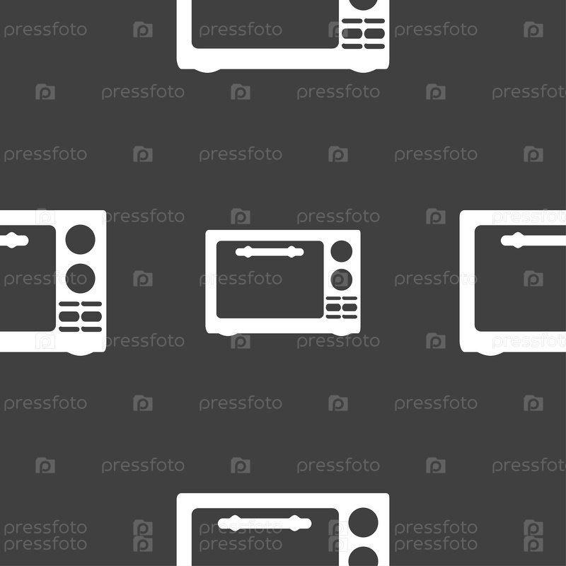 Микроволновая печь. Бесшовный узор на сером фоне. Вектор