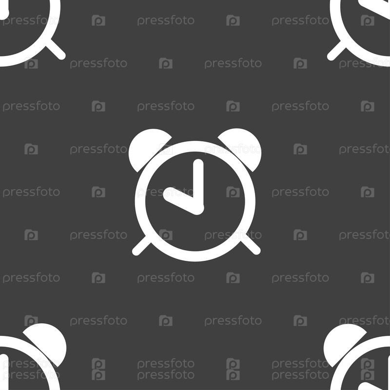 Будильник. Бесшовный узор на сером фоне. Вектор