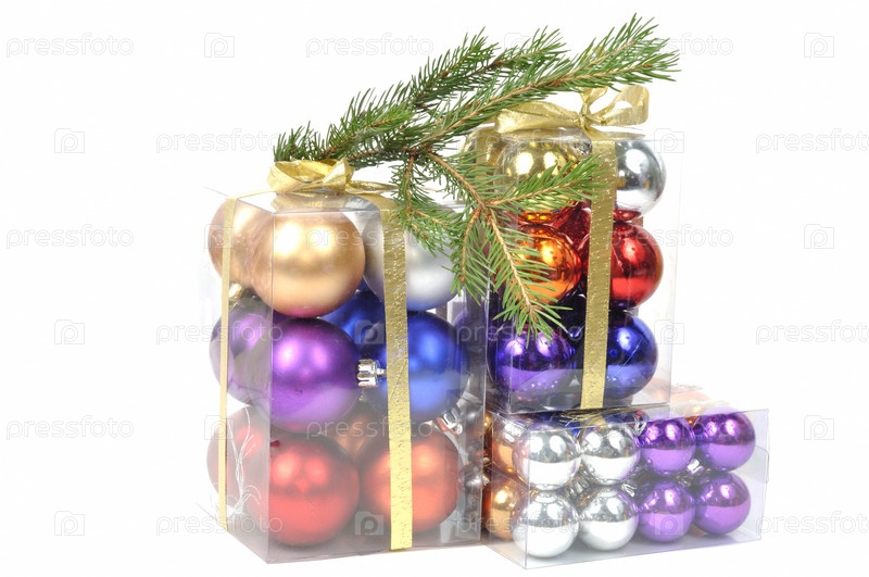 Новогодние разноцветные шары на белом фоне