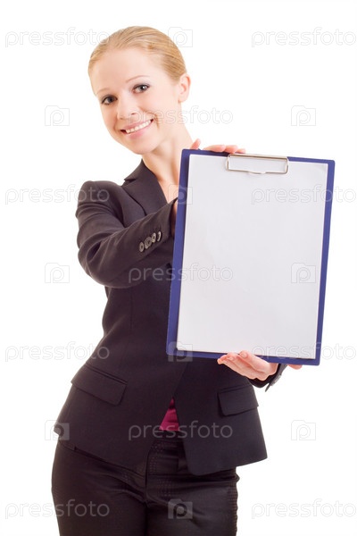 Портрет молодой бизнес-леди с папкой в руках