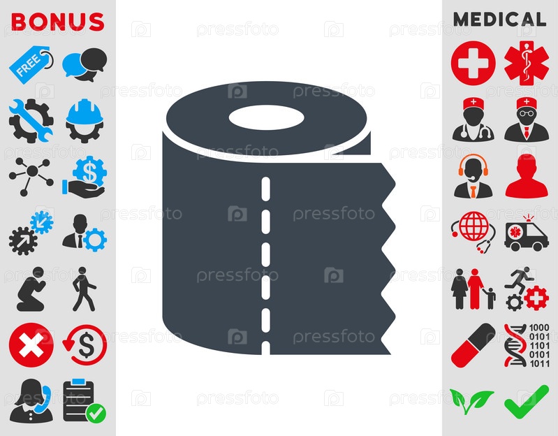 Рулон туалетной бумаги иллюстрации значок. Стиль является плоской символ, гладких синий цвет, закругленные углы, белый фон