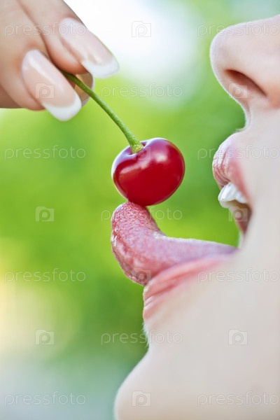 Женщина ест вишню