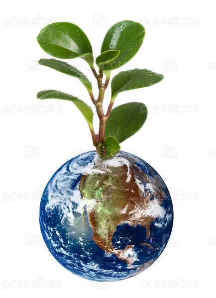 Планета Земля с растением на белом фоне