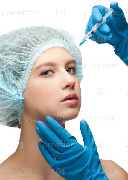 Косметические инъекции ботокса в лицо привлекательной женщины