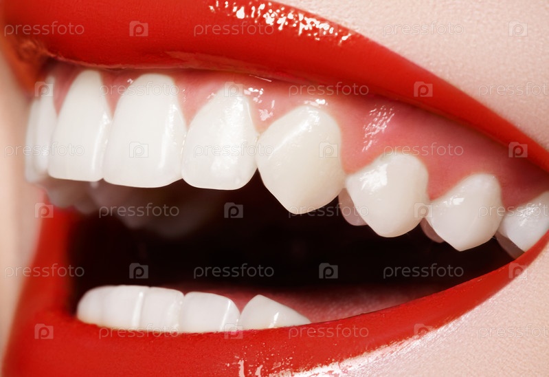 Улыбка. Красивые, белые, здоровые зубы крупным планом