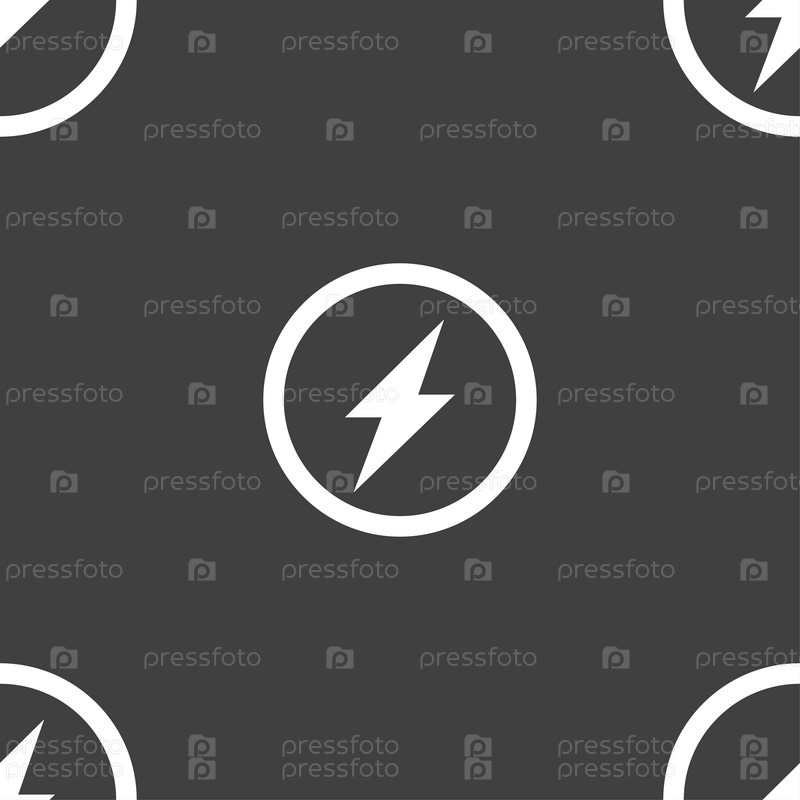 Значок вспышки. Бесшовный узор на сером фоне. Вектор