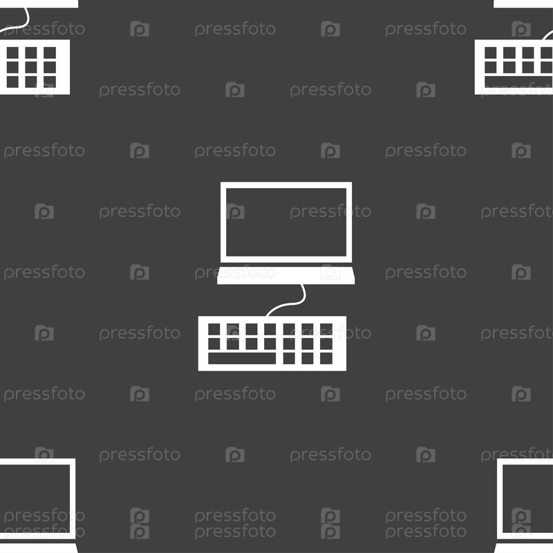 Монитор компьютера и клавиатуры значок. Бесшовный узор на сером фоне. Вектор