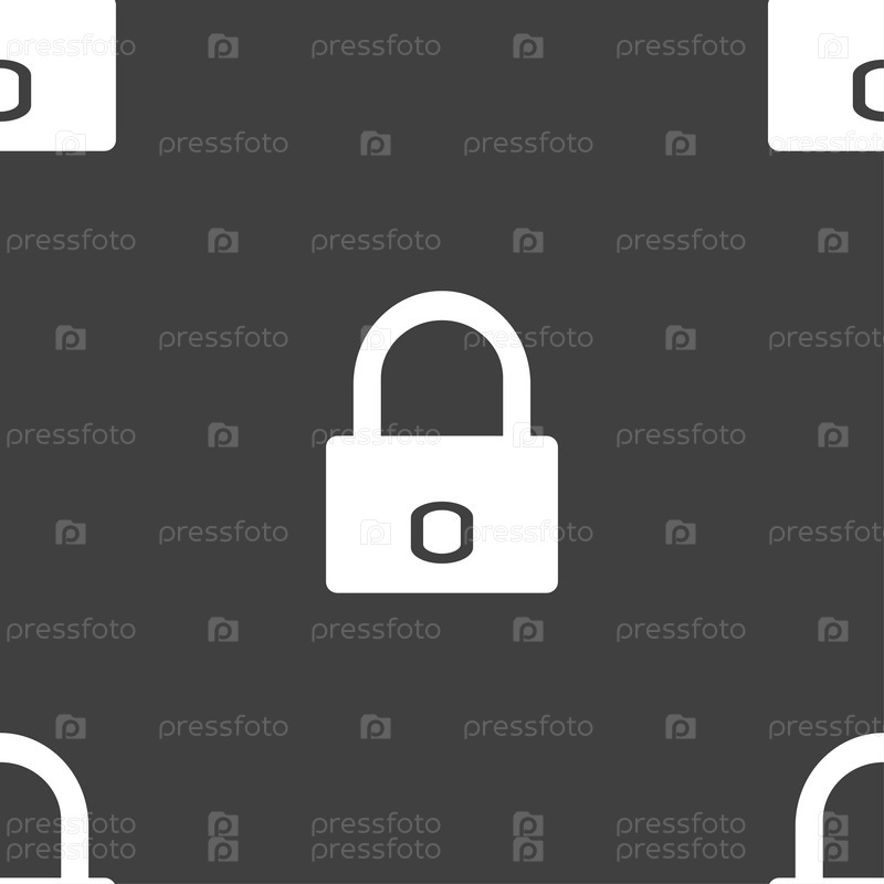 Значок замка. Бесшовный узор на сером фоне. Вектор