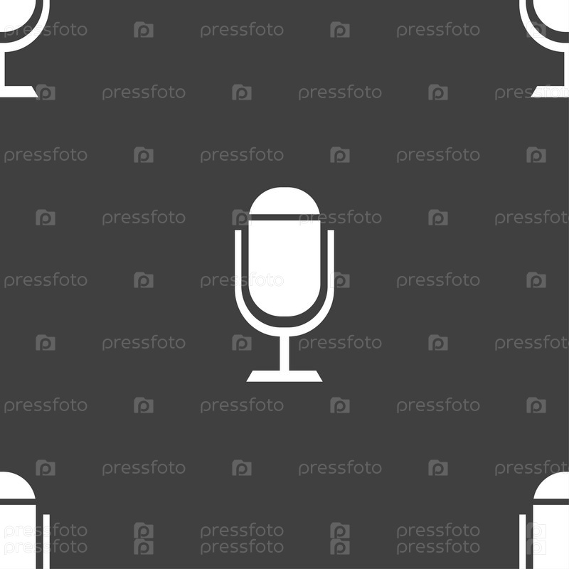 Значок микрофона. Бесшовный узор на сером фоне. Вектор