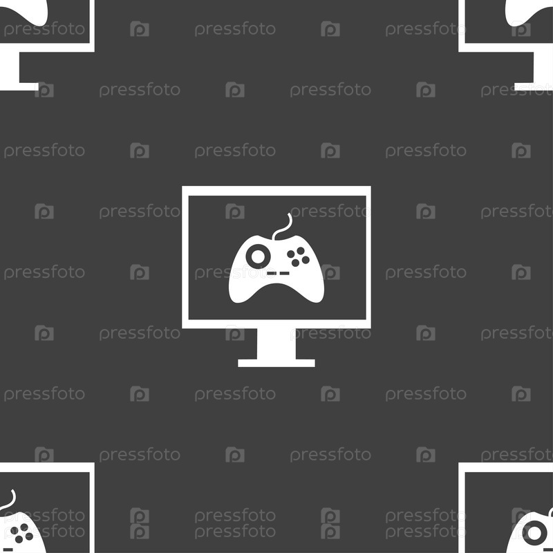 Джойстик и монитор. Бесшовный узор на сером фоне. Вектор
