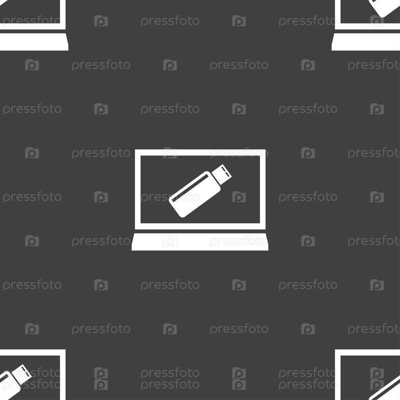 Флэш-накопитель. Бесшовный узор на сером фоне. Вектор