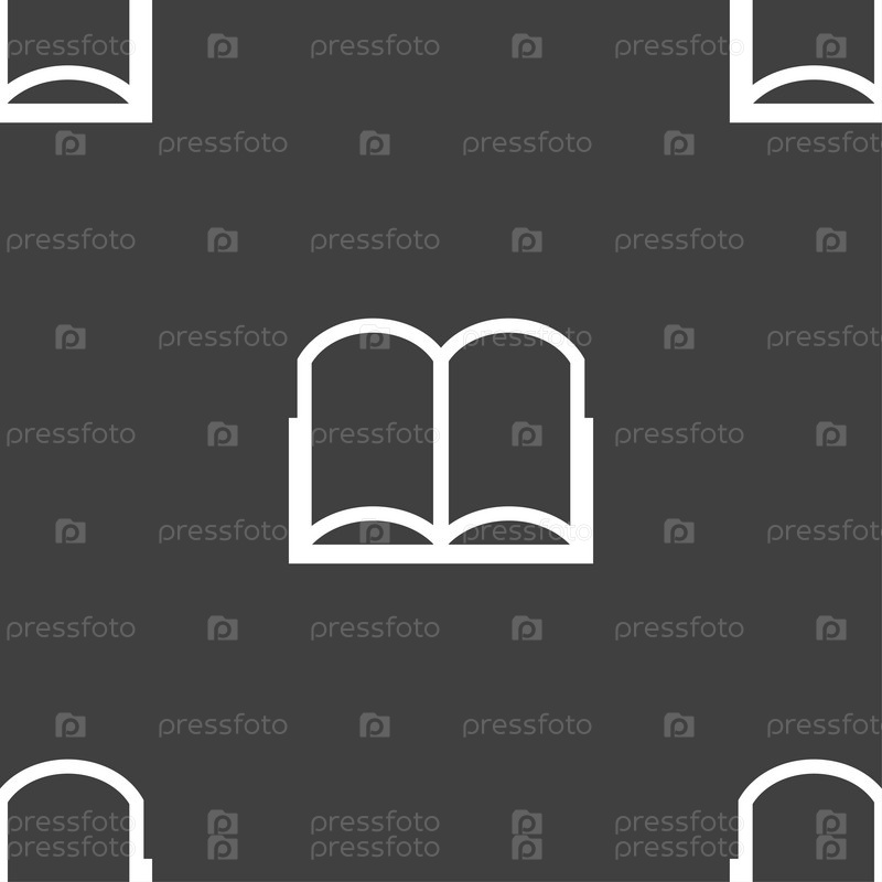 Знак значок книги. Открытая книга символ. Бесшовный узор на сером фоне. Вектор