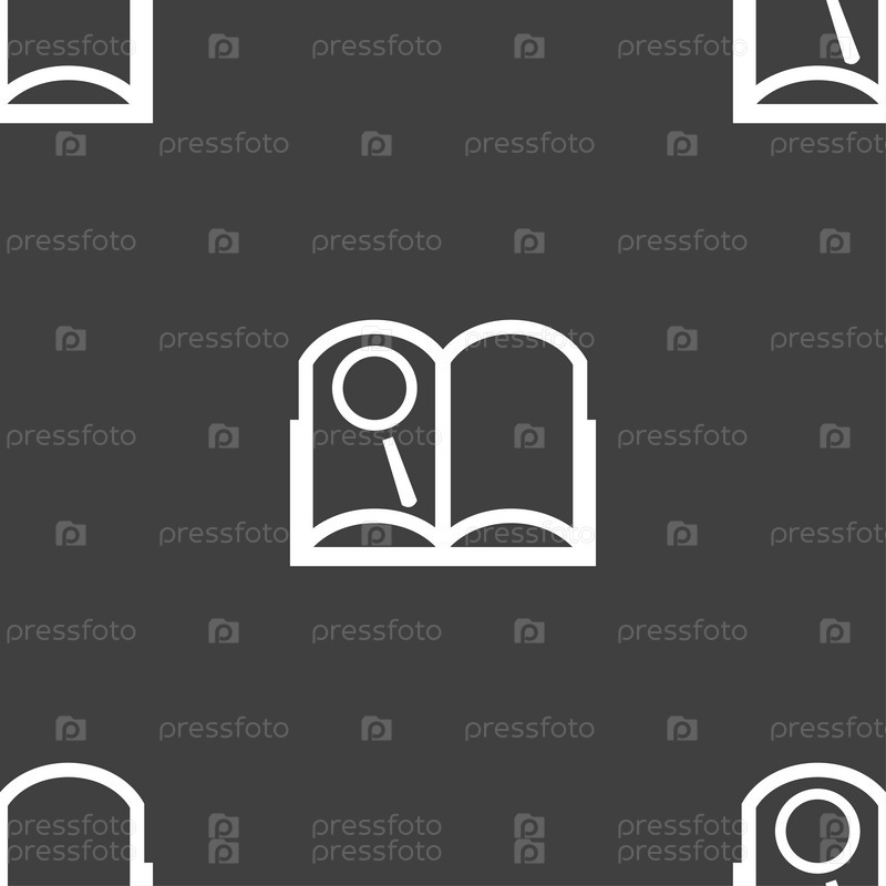 Знак значок книги. Открытая книга символ. Бесшовный узор на сером фоне. Вектор