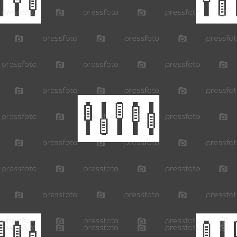 Диджей-консоль микс ручек и кнопок. Бесшовный узор на сером фоне. Вектор