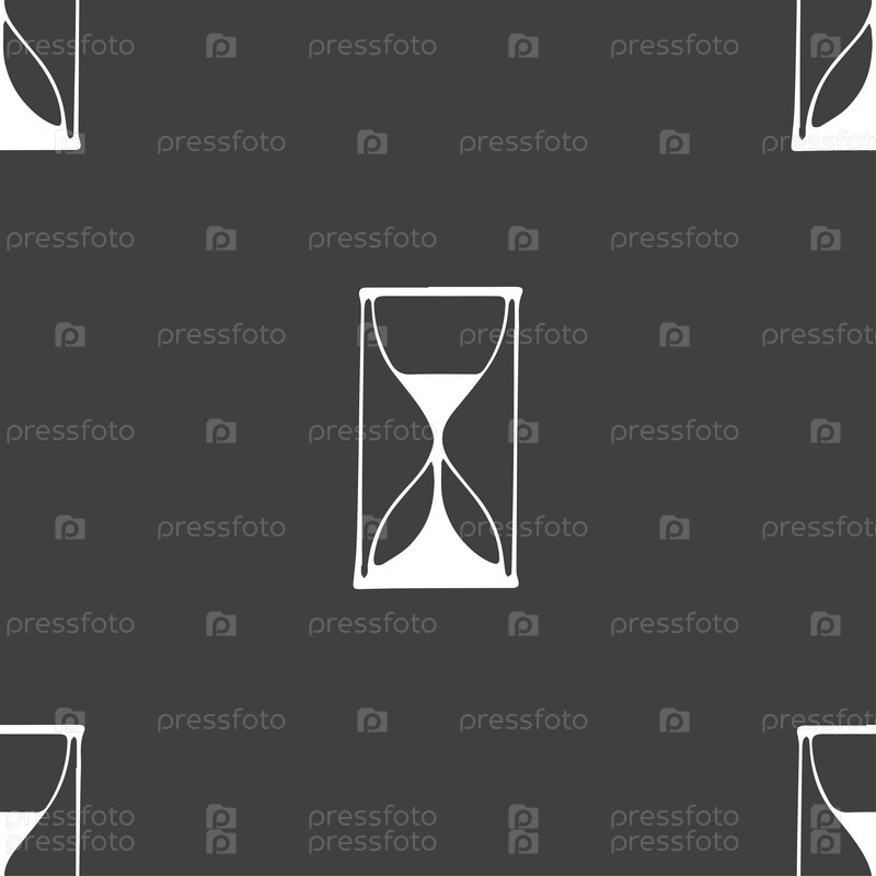 Значок песочных часов. Бесшовный узор на сером фоне. Вектор