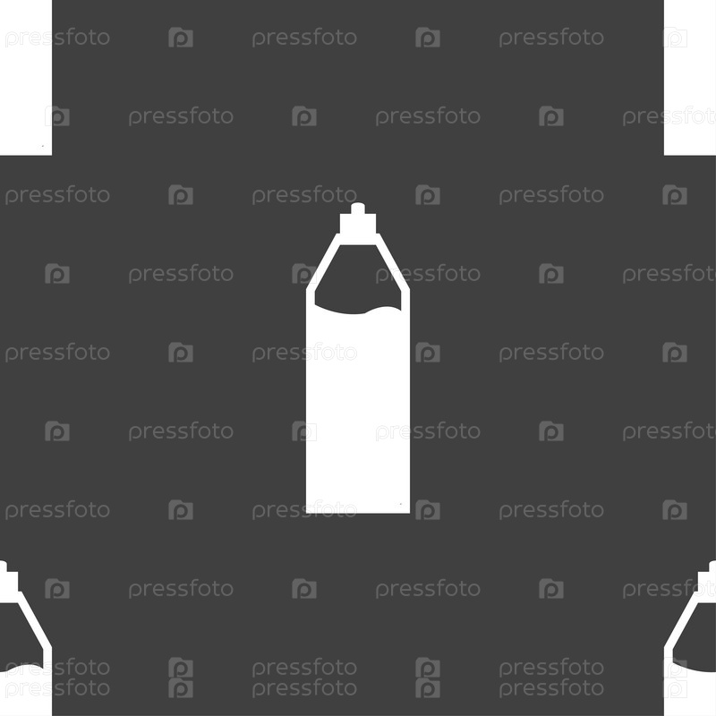 Пластиковая бутылка с напитком. Бесшовный узор на сером фоне. Вектор