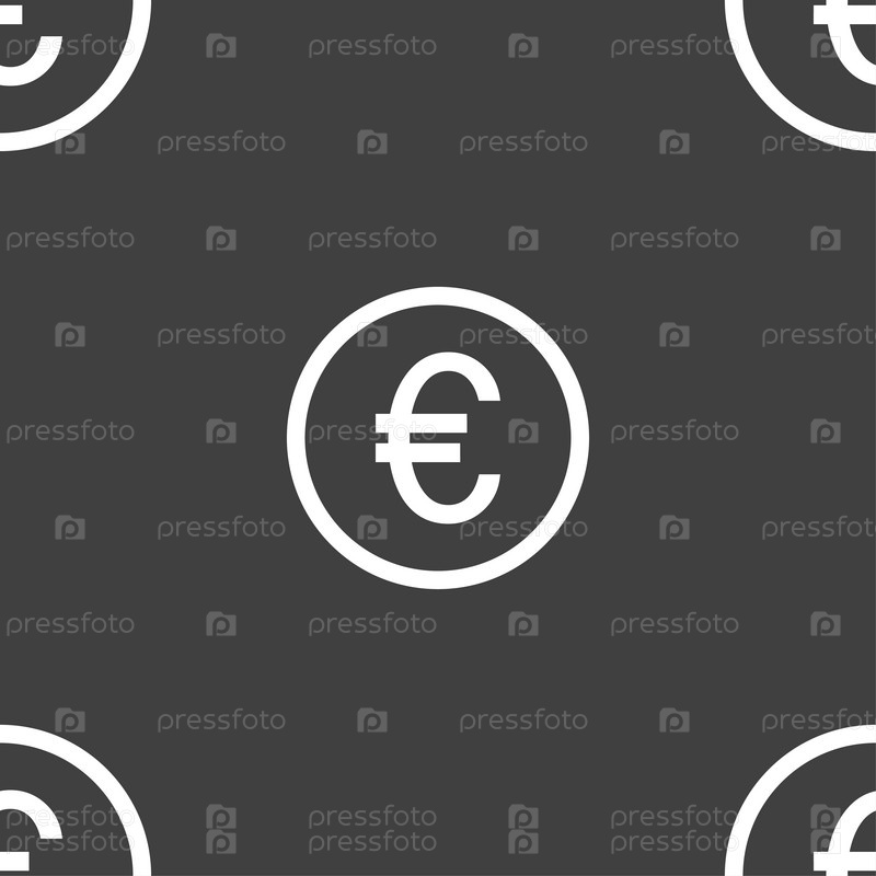 Значок евро. Бесшовный узор на сером фоне. Вектор