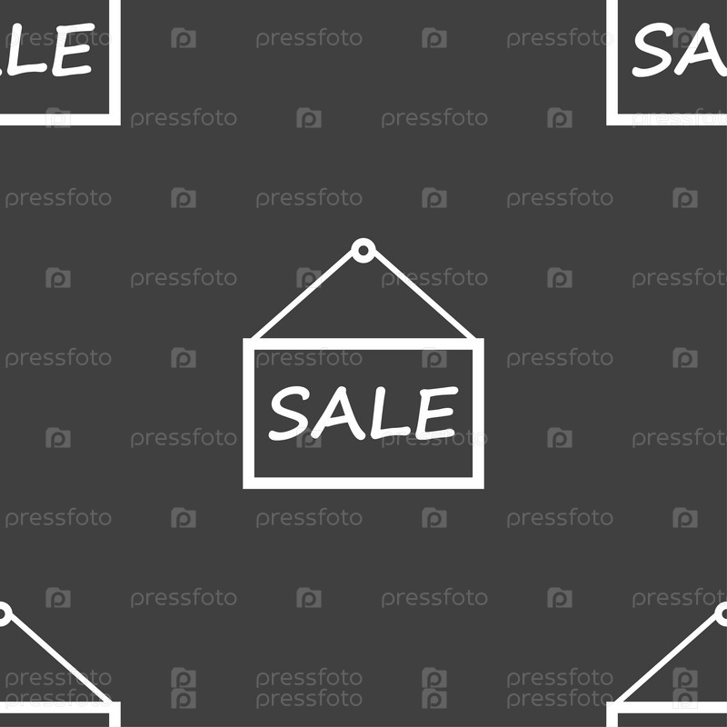 Продажа тег. Бесшовный узор на сером фоне. Вектор