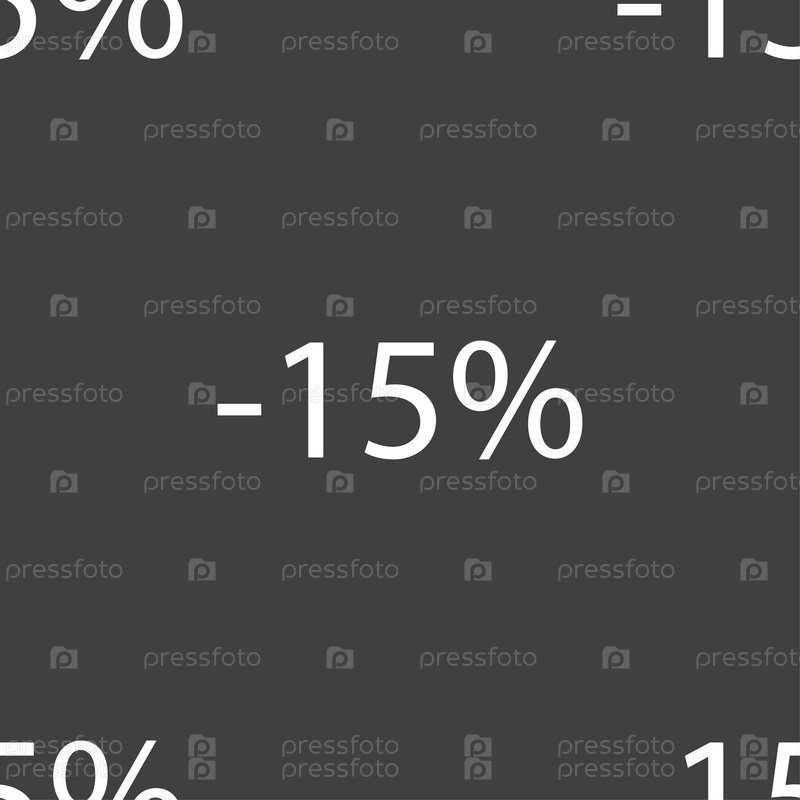 15% скидка. Бесшовный узор на сером фоне. Вектор