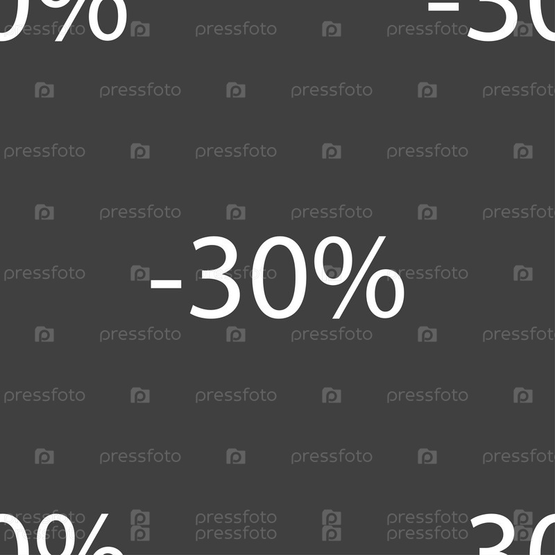 30% скидка знак значок. Продажа символ. Специальное предложение метка. Бесшовный узор на сером фоне. Вектор
