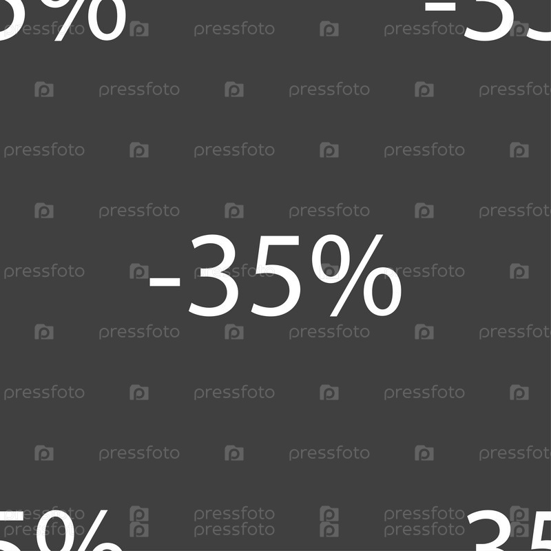 35% скидка знак значок. Продажа символ. Специальное предложение метка. Бесшовный узор на сером фоне. Вектор