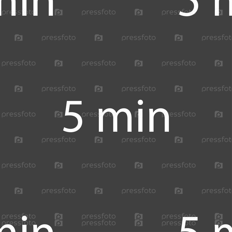 Пять минут знак значок. Бесшовный узор на сером фоне. Вектор