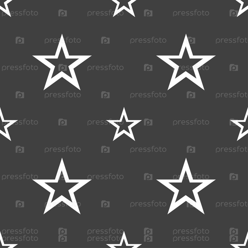 Знак звезды значок. Любимые кнопки. Символ навигации. Бесшовный узор на сером фоне. Вектор