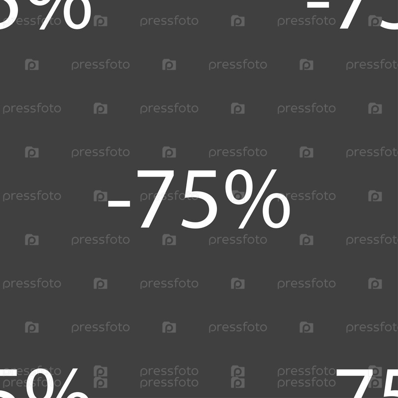 75% скидка. Бесшовный узор на сером фоне. Вектор
