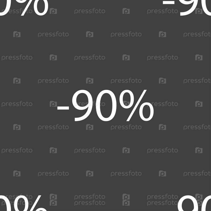 90% скидка. Бесшовный узор на сером фоне. Вектор