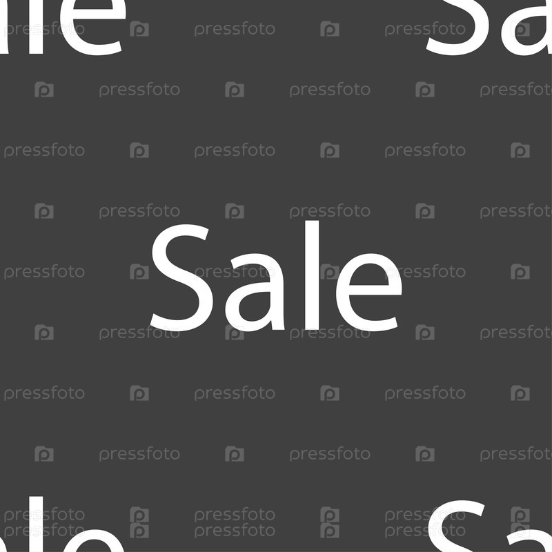 Продажа тег. Бесшовный узор на сером фоне. Вектор