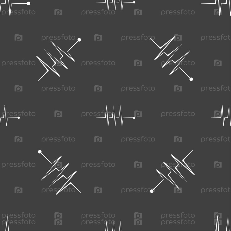 Кардиограмма мониторинга знак значок. Сердце бьется символ. Бесшовный узор на сером фоне. Вектор