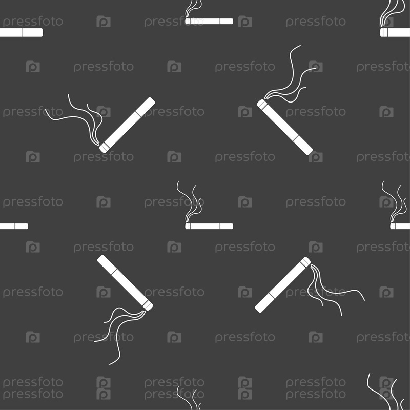 Сигарета. Бесшовный узор на сером фоне. Вектор
