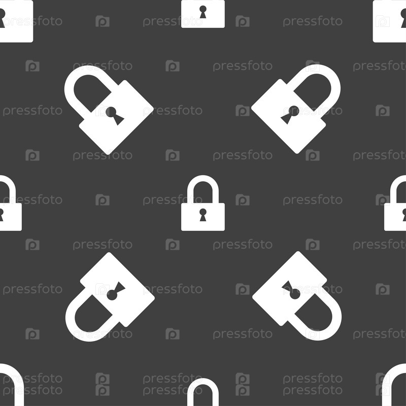 Значок замка знак. Локера символ. Бесшовный узор на сером фоне. Вектор